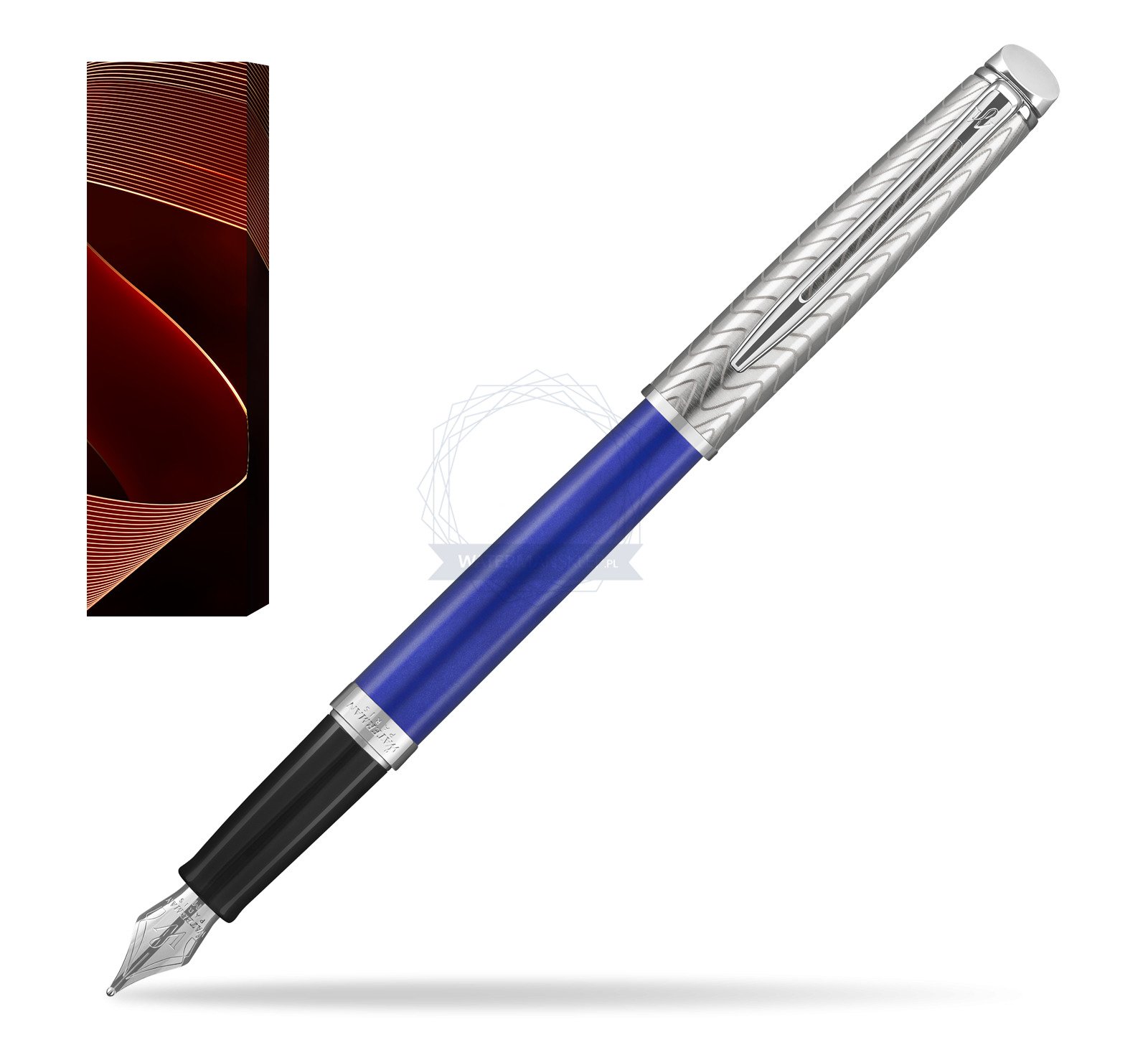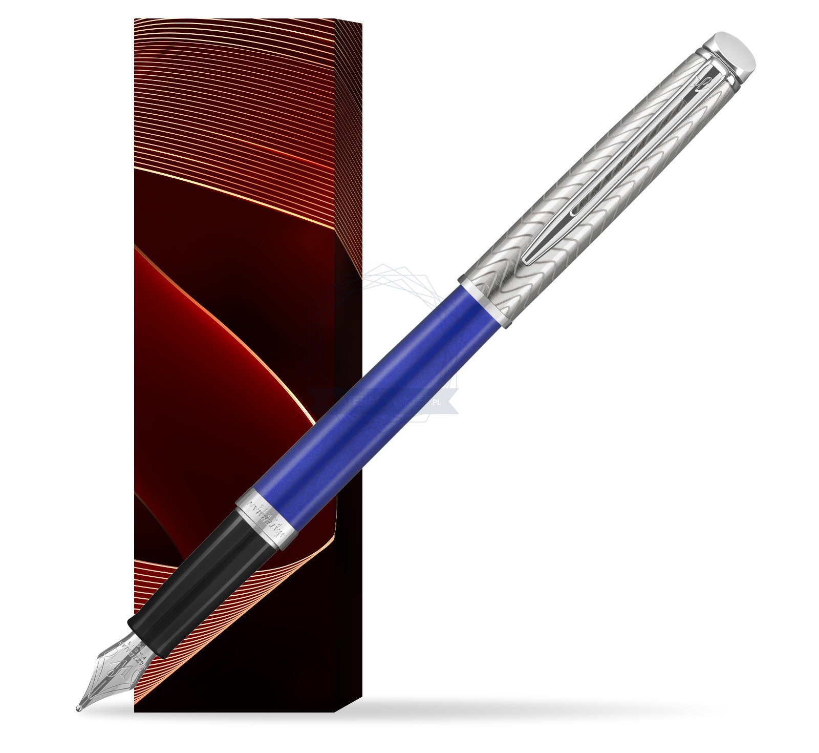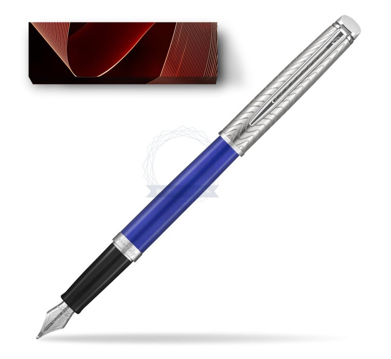 Hémisphère makes each moment refreshingly elegant. In the spirit of Waterman innovation, it redefines timeless lines with a new focus on streamlined simplicity. Striking clean design and noble materials come together for a delightful writing experience to inspire your most creative thoughts. The Finish A vibrant blue lacquer finish complete with intricate signature pattern etched onto the pen. The Nib: Comfortable and brilliantly designed, the expertly engraved nib is unmistakable in its writing experience. The Clip Palladium finish. This Waterman Fountain Pen can be refilled with every Waterman Ink cartridges or by Waterman Ink in bottle. This Waterman Fountain Pen comes with nib size F. One ink cartridge included in random blue or black colour.