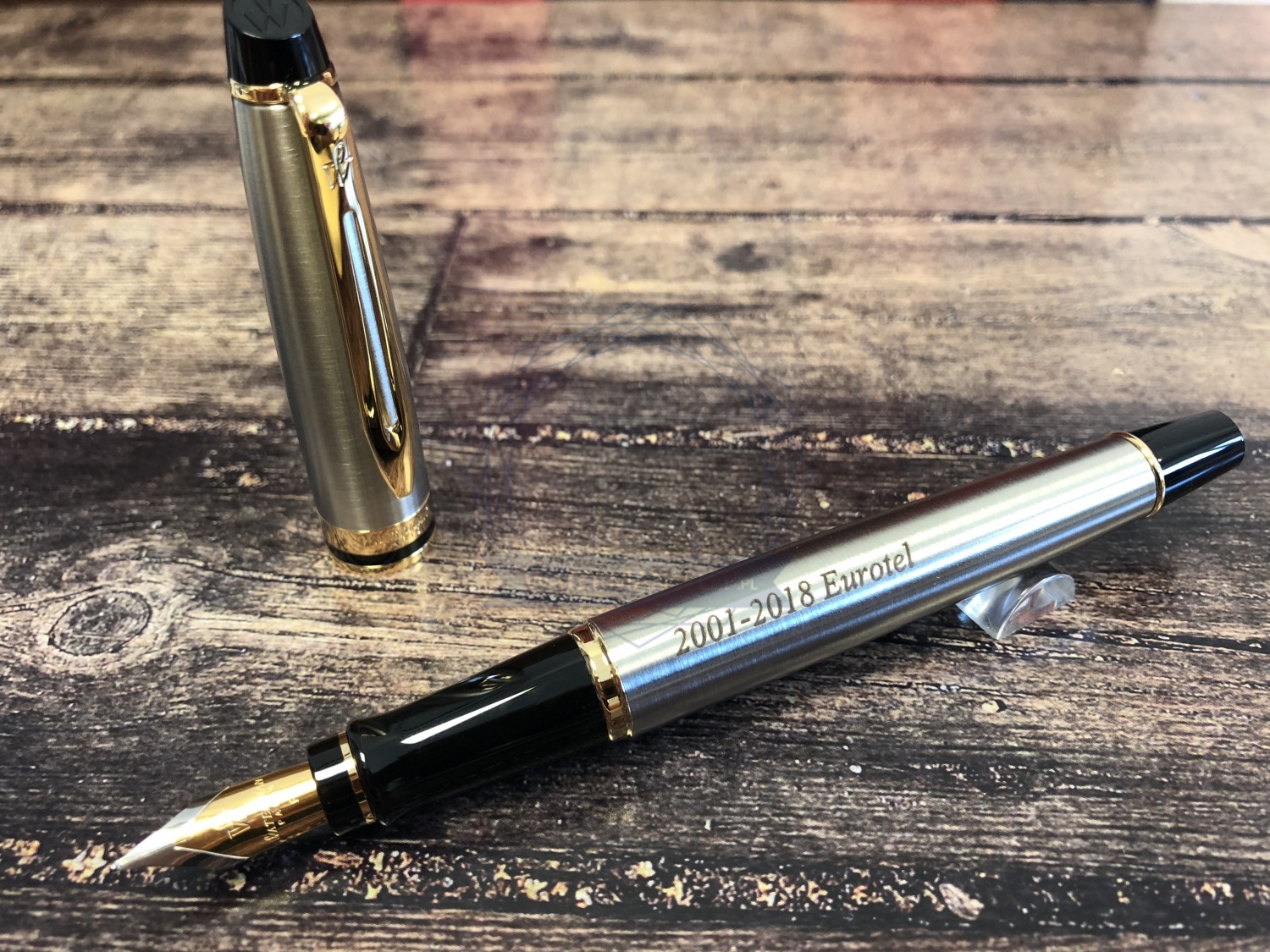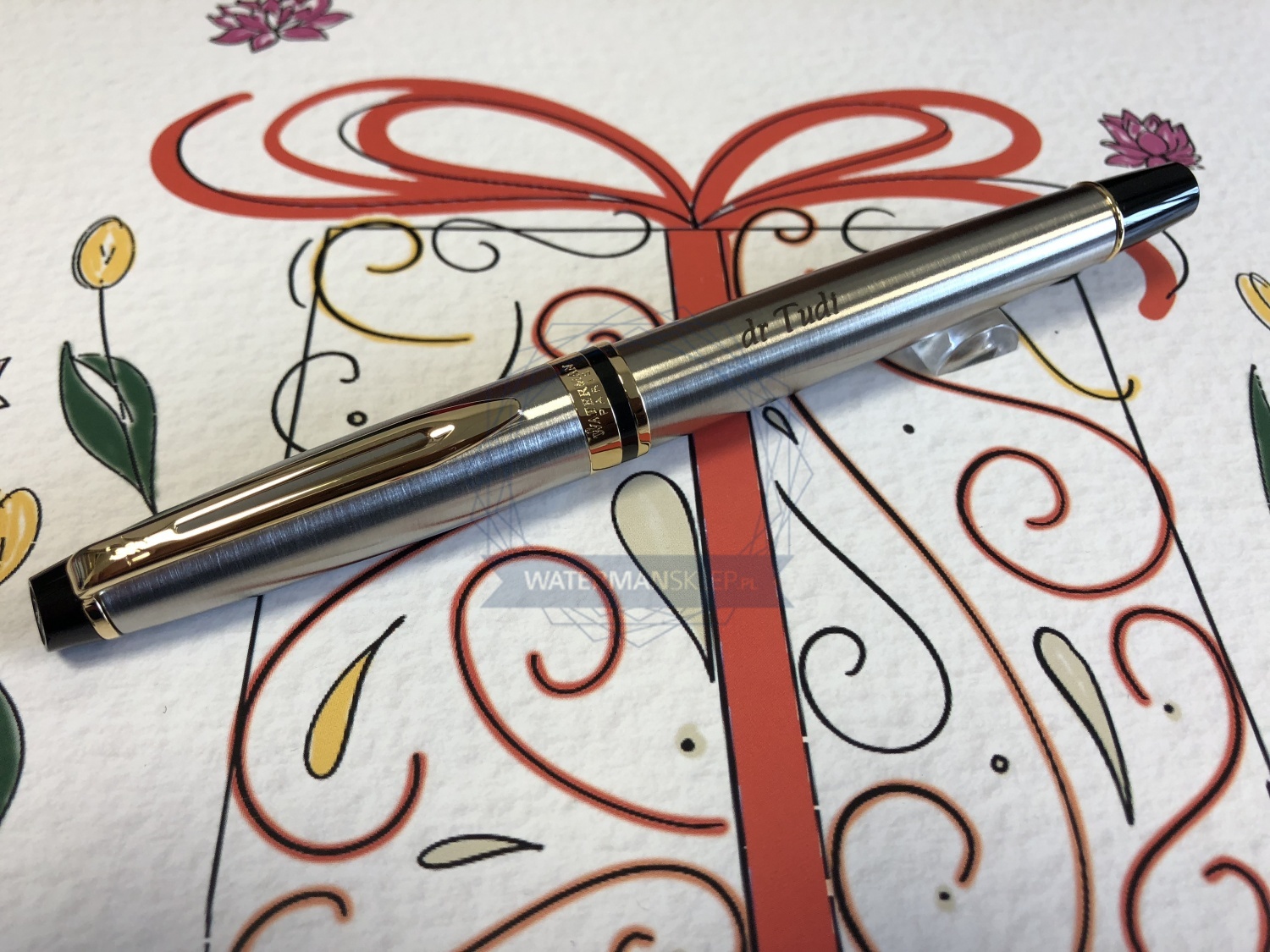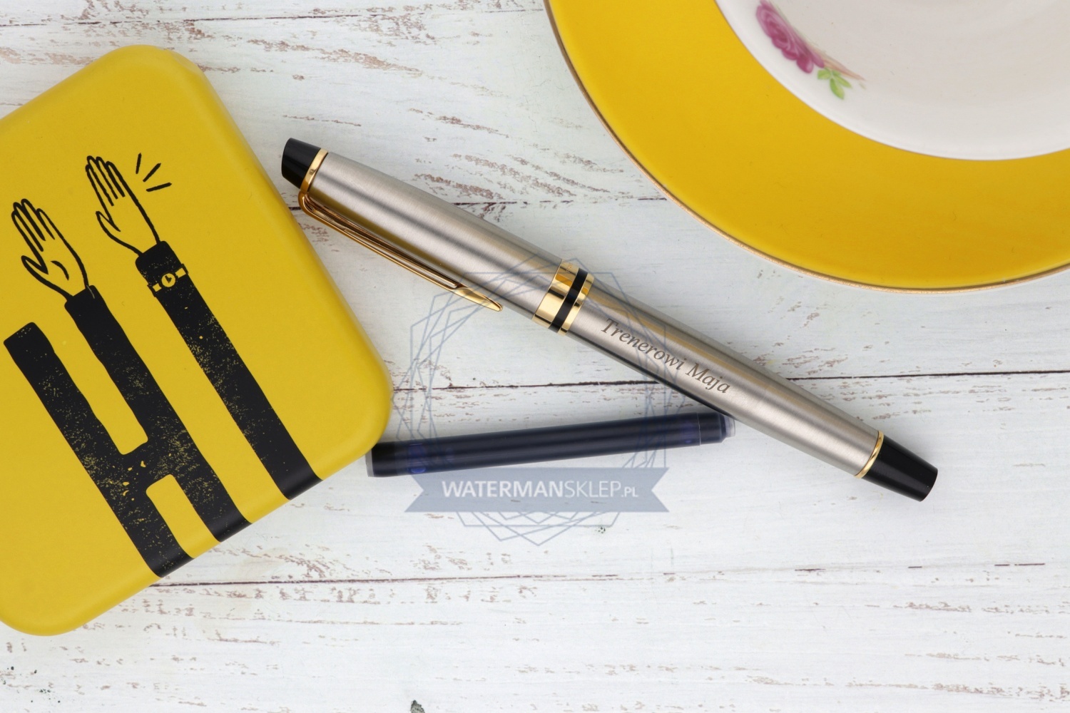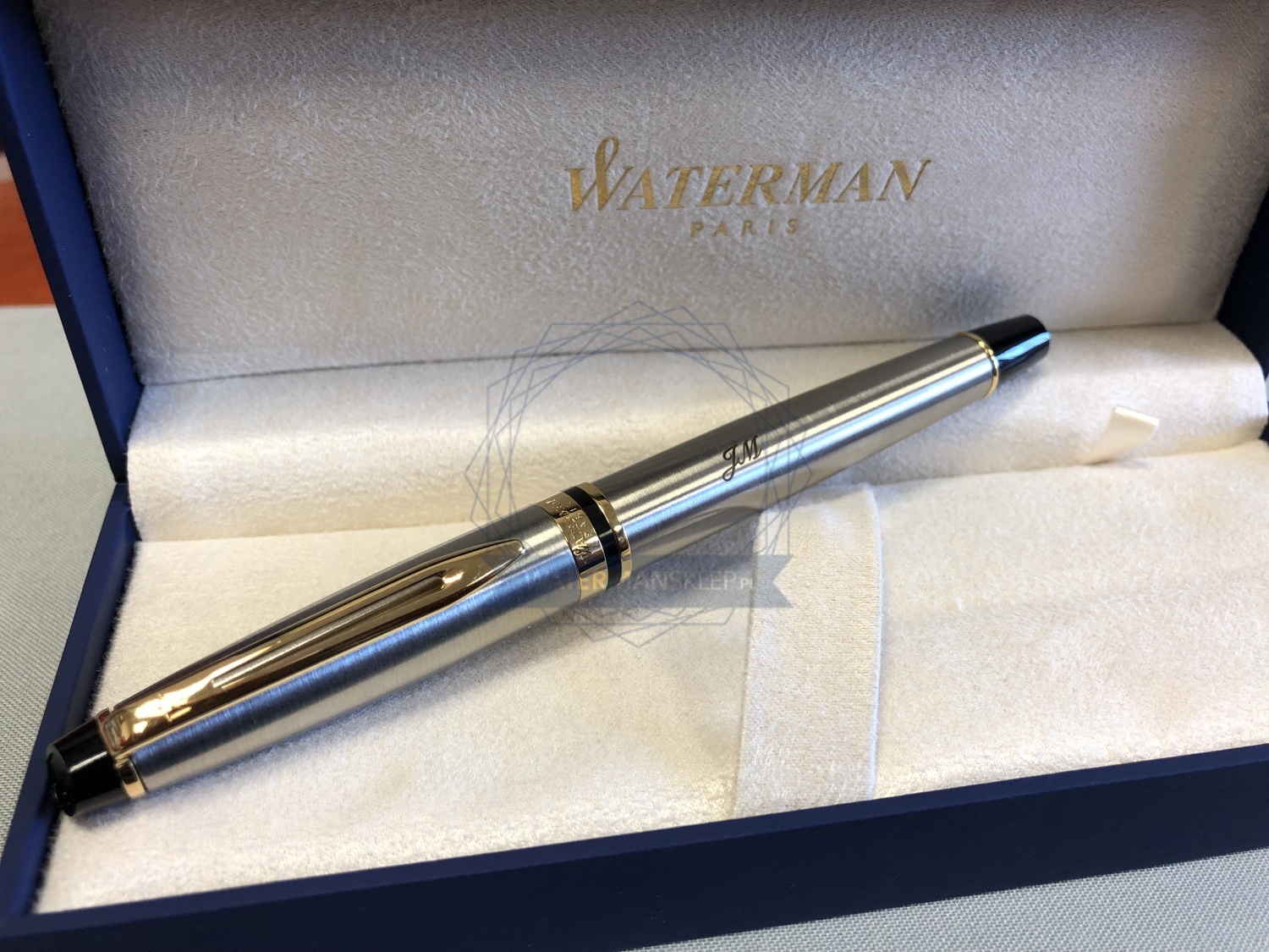 Expert brings smart Parisian styling to your business day. With its generous cigar-shaped silhouette and wealth of fine materials, it reveals that beneath your executive persona stirs a creative spirit. Let your vision and flair shine in your professional life with classic Waterman panache. Clients and colleagues will know you by your taste for sophistication. Assertive lines lend a traditional feel to this contemporary classic. The collection features a generous choice of colours and finishes including rich deep lacquers and fine engraving. Brushed steel, golden trims... the alchemist's art allies these metals to create an accessory both contemporary and sophisticated. Its smooth curves add suppleness to your handwriting. As generous as it is sophisticated, this finely gold plated stainless steel nib is adorned with the emblematic W for Waterman. Expert Stainless Steel GT Fountain pen is ideal as a gift for everyone on all kinds of occasions like birthdays or as a Waterman Christmas gift. This product is perfect for all companies who wants to give Waterman’s gifts for their employees, partners or investors. Once you feel the grace and fluidity in writing of this product you can get Rollerball Pen and Ballpoint Pen matching to the set. This Waterman Fountain Pen can be refilled with every Waterman Ink cartridges or by Waterman Ink in bottle. This Waterman Fountain Pen comes with nib size F. One ink cartridge included in random blue or black colour. This product can be engraved by laser. Presented in its Waterman gift box.