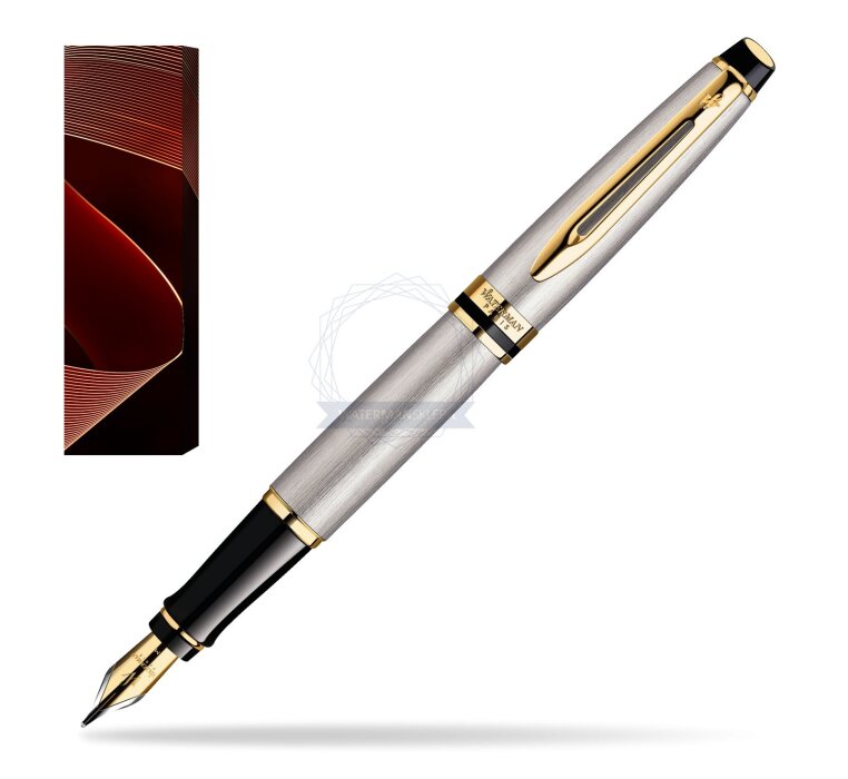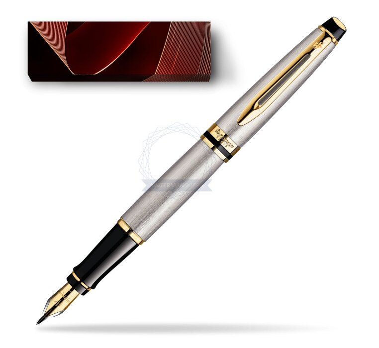 Expert brings smart Parisian styling to your business day. With its generous cigar-shaped silhouette and wealth of fine materials, it reveals that beneath your executive persona stirs a creative spirit. Let your vision and flair shine in your professional life with classic Waterman panache. Clients and colleagues will know you by your taste for sophistication. Assertive lines lend a traditional feel to this contemporary classic. The collection features a generous choice of colours and finishes including rich deep lacquers and fine engraving. Brushed steel, golden trims... the alchemist's art allies these metals to create an accessory both contemporary and sophisticated. Its smooth curves add suppleness to your handwriting. As generous as it is sophisticated, this finely gold plated stainless steel nib is adorned with the emblematic W for Waterman. Expert Stainless Steel GT Fountain pen is ideal as a gift for everyone on all kinds of occasions like birthdays or as a Waterman Christmas gift. This product is perfect for all companies who wants to give Waterman’s gifts for their employees, partners or investors. Once you feel the grace and fluidity in writing of this product you can get Rollerball Pen and Ballpoint Pen matching to the set. This Waterman Fountain Pen can be refilled with every Waterman Ink cartridges or by Waterman Ink in bottle. This Waterman Fountain Pen comes with nib size F. One ink cartridge included in random blue or black colour. This product can be engraved by laser. Presented in its Waterman gift box.