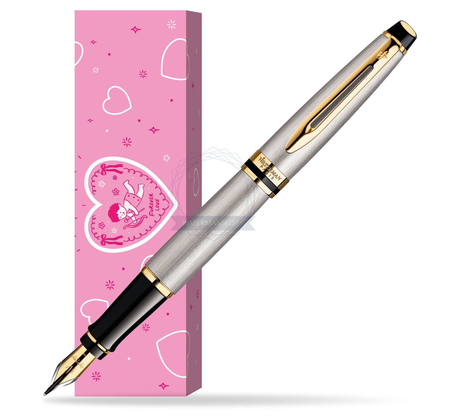 Expert brings smart Parisian styling to your business day. With its generous cigar-shaped silhouette and wealth of fine materials, it reveals that beneath your executive persona stirs a creative spirit. Let your vision and flair shine in your professional life with classic Waterman panache. Clients and colleagues will know you by your taste for sophistication. Assertive lines lend a traditional feel to this contemporary classic. The collection features a generous choice of colours and finishes including rich deep lacquers and fine engraving. Brushed steel, golden trims... the alchemist's art allies these metals to create an accessory both contemporary and sophisticated. Its smooth curves add suppleness to your handwriting. As generous as it is sophisticated, this finely gold plated stainless steel nib is adorned with the emblematic W for Waterman. Expert Stainless Steel GT Fountain pen is ideal as a gift for everyone on all kinds of occasions like birthdays or as a Waterman Christmas gift. This product is perfect for all companies who wants to give Waterman’s gifts for their employees, partners or investors. Once you feel the grace and fluidity in writing of this product you can get Rollerball Pen and Ballpoint Pen matching to the set. This Waterman Fountain Pen can be refilled with every Waterman Ink cartridges or by Waterman Ink in bottle. This Waterman Fountain Pen comes with nib size F. One ink cartridge included in random blue or black colour. This product can be engraved by laser. Presented in its Waterman gift box.