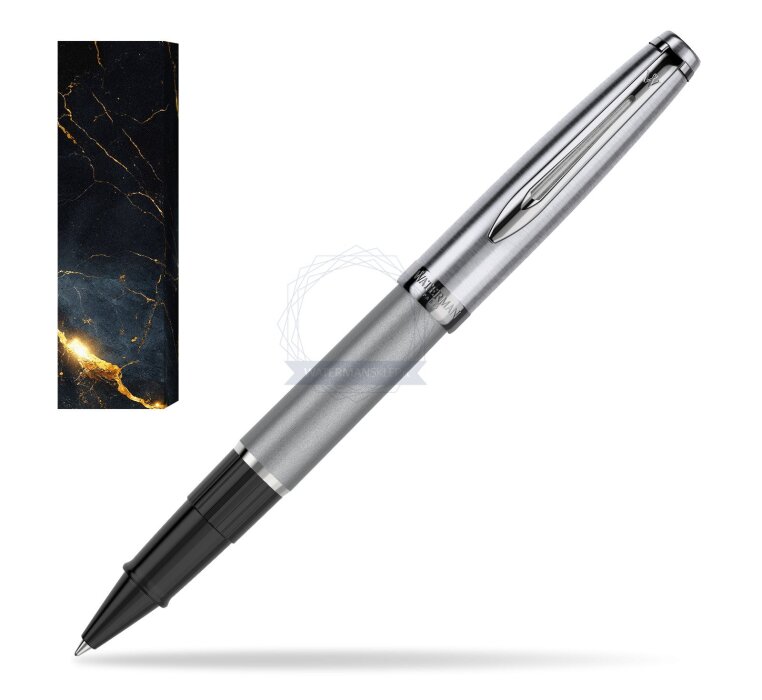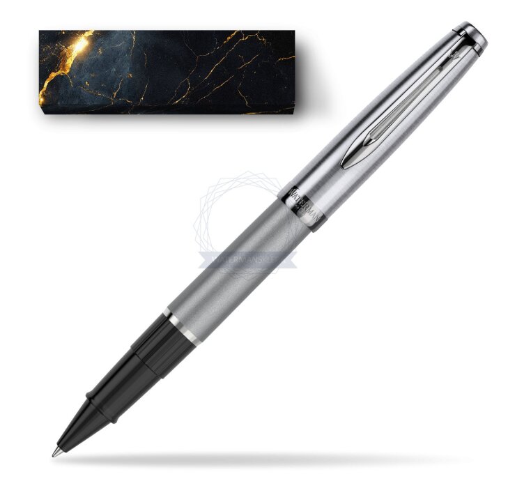 For the first time in many years, Waterman introduces a completely new line. Embleme is a collection based and inspired by Paris - a city inseparably associated with just Waterman products. The entire collection is a reference to the casual style of Paris. Our latest collection embodies this Parisian style with its timeless expression of taste and confidence. Pens and pens designed to perfectly fit the hand of the writer. They were created for those stationery users who value high quality products and original appearance and colors. Emblème is the only Waterman brand line that offers a metal cap for the entire product range. The inspiration for the creation of this ball pen is casual style, Parisian style in fashion. The product loosely refers to the fashion icon, Coco Chanel, which values the timeless quality of classic designs. The Embleme rollerball pen fits perfectly in your hand. The tip is made of stainless steel, brushing across the tip adds a chic. Chrome finishes. Premium metallic gray resin body. Each Waterman rollerball pen is packed in an aesthetic gift box and has a rollerball pen refill included (the color of the refill is random).