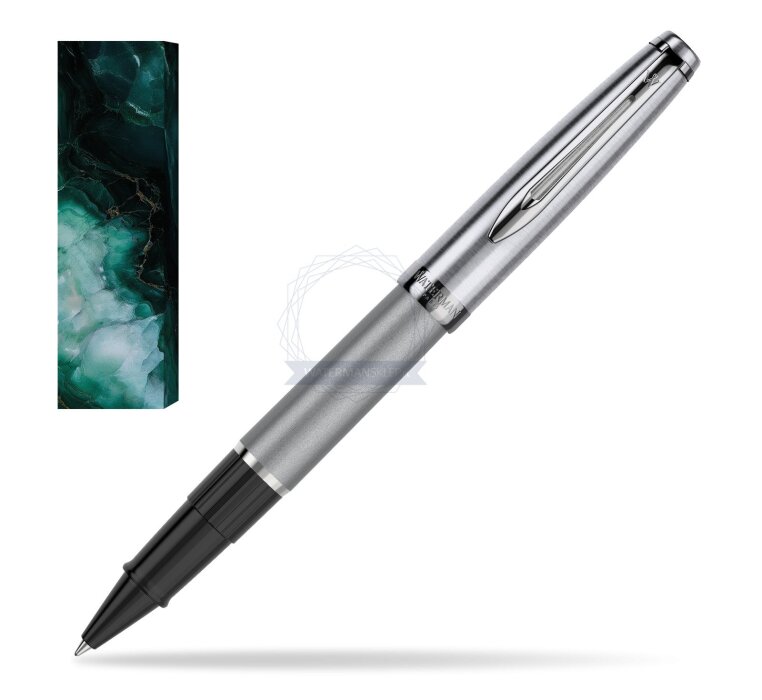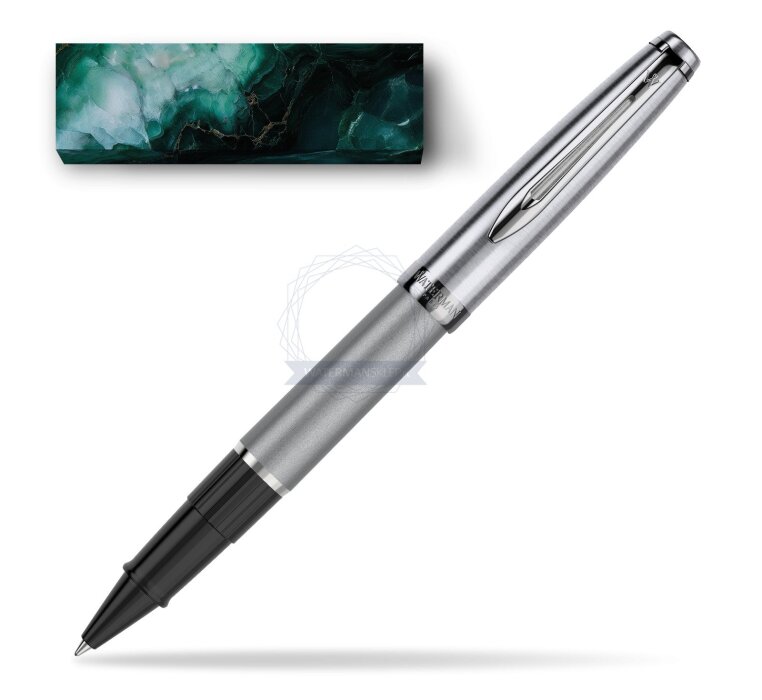 For the first time in many years, Waterman introduces a completely new line. Embleme is a collection based and inspired by Paris - a city inseparably associated with just Waterman products. The entire collection is a reference to the casual style of Paris. Our latest collection embodies this Parisian style with its timeless expression of taste and confidence. Pens and pens designed to perfectly fit the hand of the writer. They were created for those stationery users who value high quality products and original appearance and colors. Emblème is the only Waterman brand line that offers a metal cap for the entire product range. The inspiration for the creation of this ball pen is casual style, Parisian style in fashion. The product loosely refers to the fashion icon, Coco Chanel, which values the timeless quality of classic designs. The Embleme rollerball pen fits perfectly in your hand. The tip is made of stainless steel, brushing across the tip adds a chic. Chrome finishes. Premium metallic gray resin body. Each Waterman rollerball pen is packed in an aesthetic gift box and has a rollerball pen refill included (the color of the refill is random).