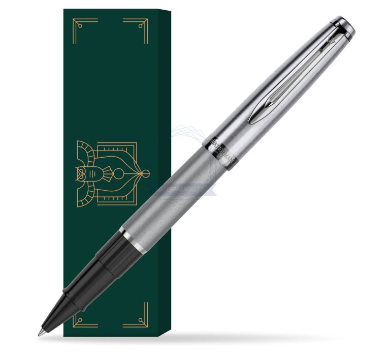 For the first time in many years, Waterman introduces a completely new line. Embleme is a collection based and inspired by Paris - a city inseparably associated with just Waterman products. The entire collection is a reference to the casual style of Paris. Our latest collection embodies this Parisian style with its timeless expression of taste and confidence. Pens and pens designed to perfectly fit the hand of the writer. They were created for those stationery users who value high quality products and original appearance and colors. Emblème is the only Waterman brand line that offers a metal cap for the entire product range. The inspiration for the creation of this ball pen is casual style, Parisian style in fashion. The product loosely refers to the fashion icon, Coco Chanel, which values the timeless quality of classic designs. The Embleme rollerball pen fits perfectly in your hand. The tip is made of stainless steel, brushing across the tip adds a chic. Chrome finishes. Premium metallic gray resin body. Each Waterman rollerball pen is packed in an aesthetic gift box and has a rollerball pen refill included (the color of the refill is random).