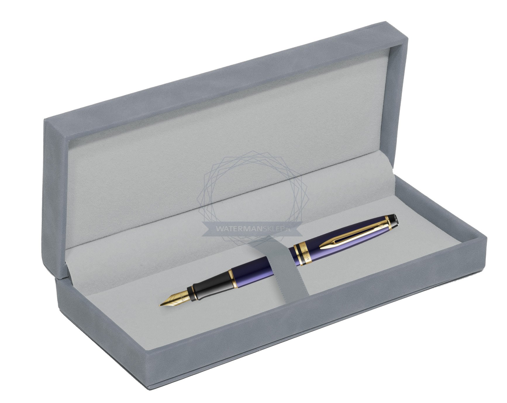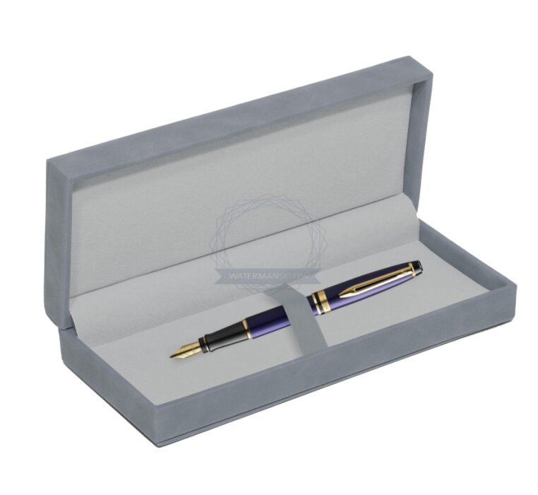 Waterman Fountain Pen Expert Navy Blue GT Gold Nib 18k in suede box grey (2093663_165GREY)