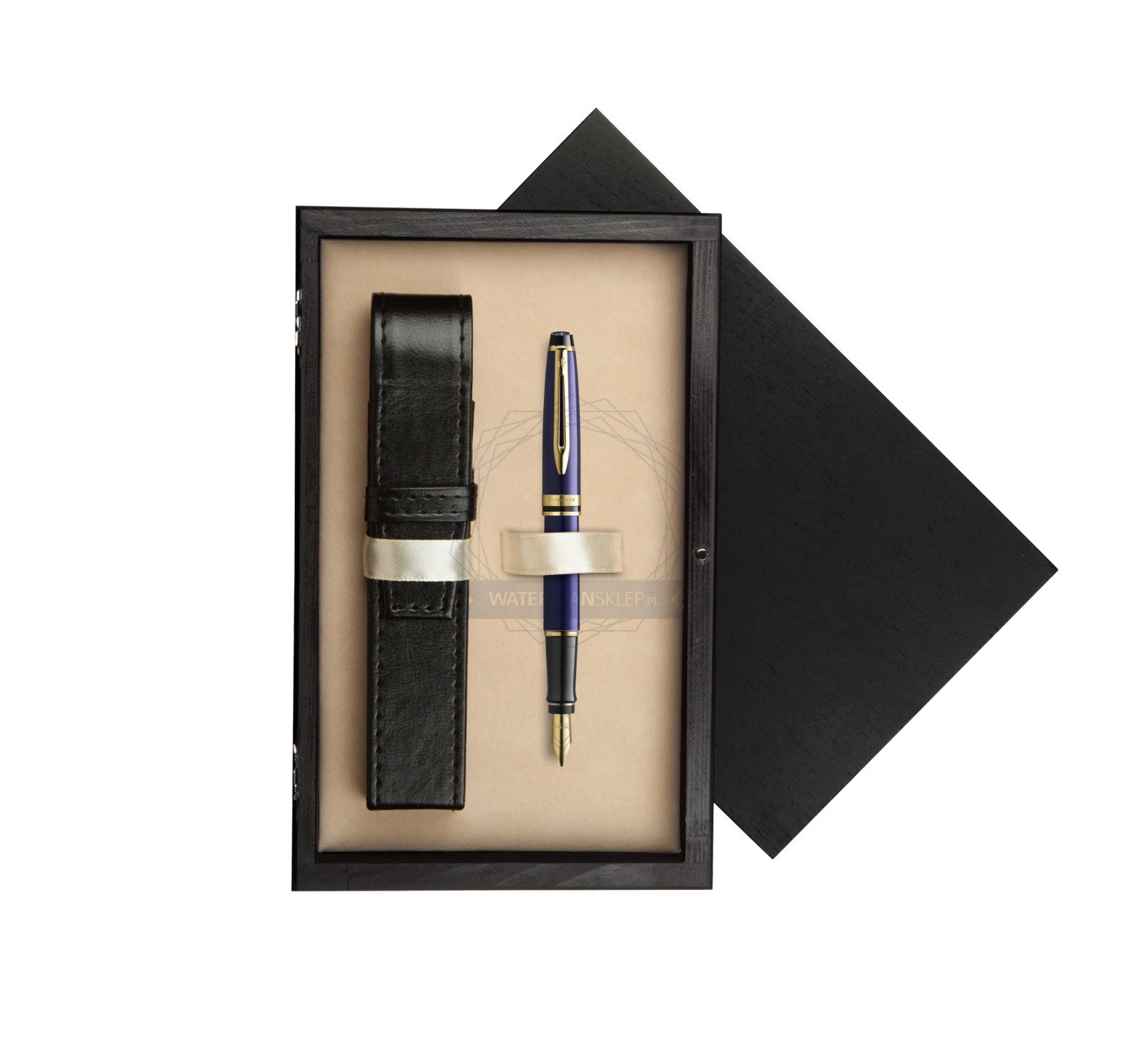 Waterman Fountain Pen Expert Navy Blue GT Gold Nib 18k single wooden box Black Single Ecru (2093663_C1E)