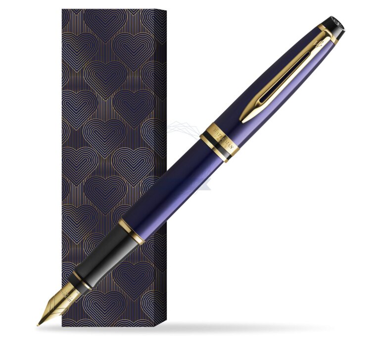 Waterman Fountain Pen Expert Navy Blue GT Gold Nib 18k in cover Love is in the air (2093663_O122)