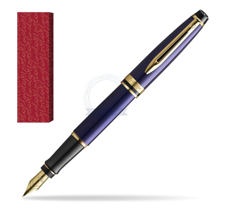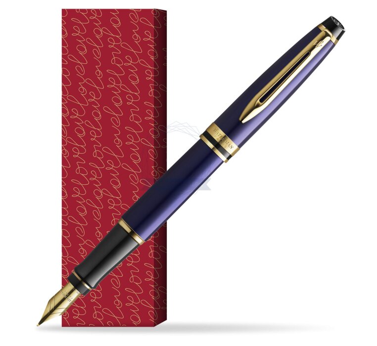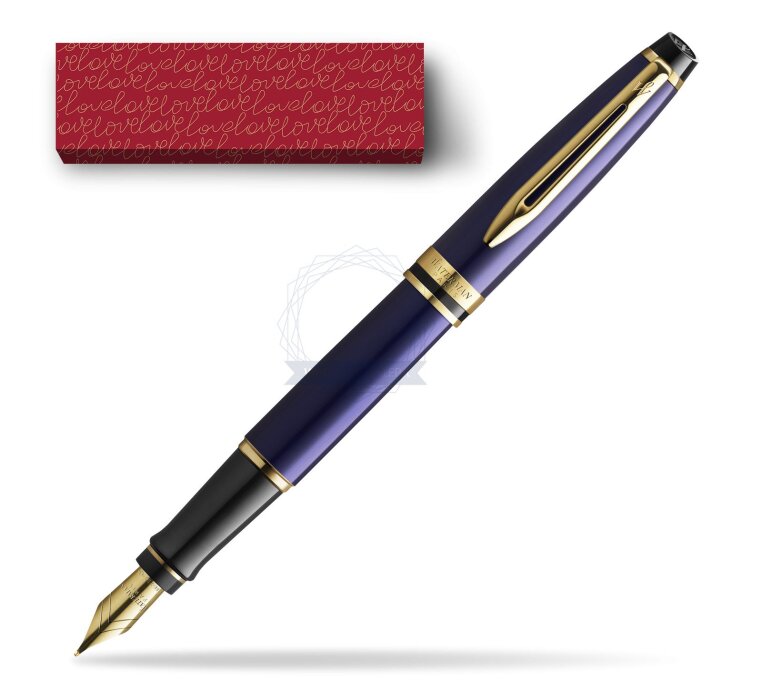 Waterman Fountain Pen Expert Navy Blue GT Gold Nib 18k in cover Love is in the air (2093663_O122)