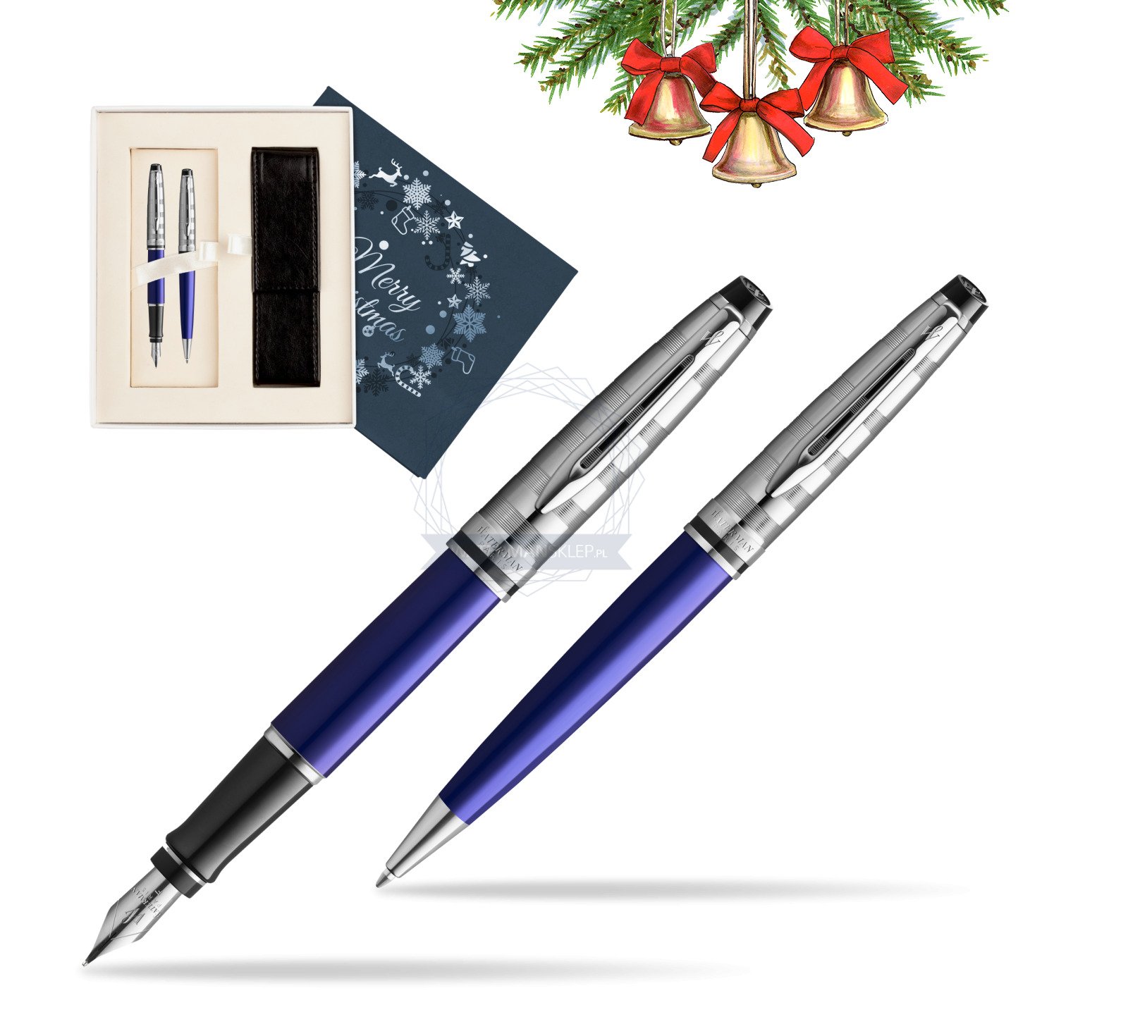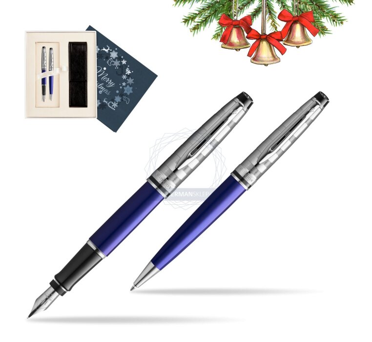 Waterman Expert DeLuxe Navy Blue Ct Fountain Pen + Waterman Expert DeLuxe Navy Blue CT Ballpoint Pen in gift box in Christmas Gift Box navy blue (2093654_2093657_S0112S)