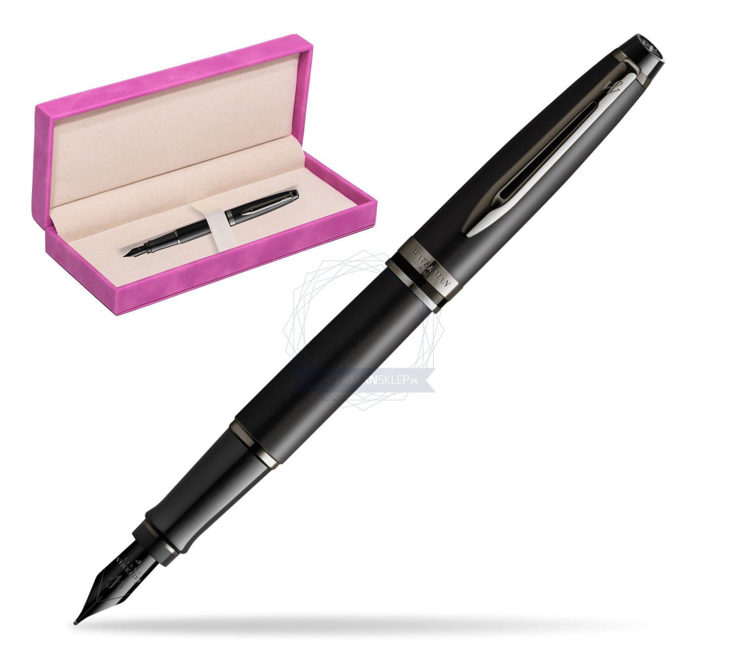 Waterman Expert Metalic Black CT Fountain Pen in suede box fuchsia (2119188_165FUCH)
