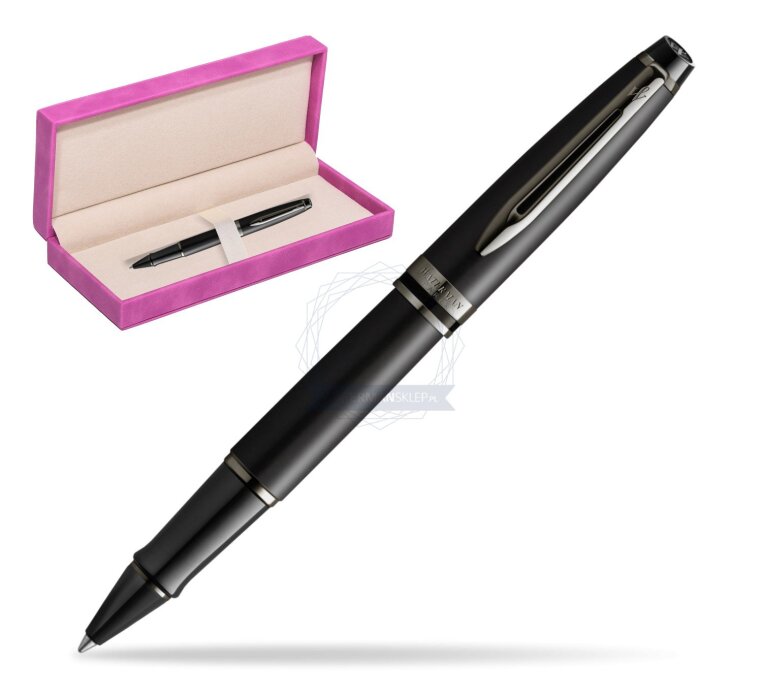 Waterman Expert Metalic Black CT Rollerball pen in suede box fuchsia (2119190_165FUCH)