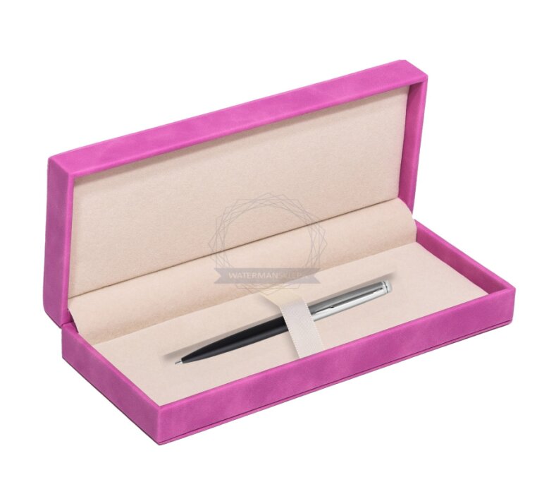 Waterman Hemisphere Essential Metallic Ballpoint Pen Black CT in suede box pink (2146586_165PINK)