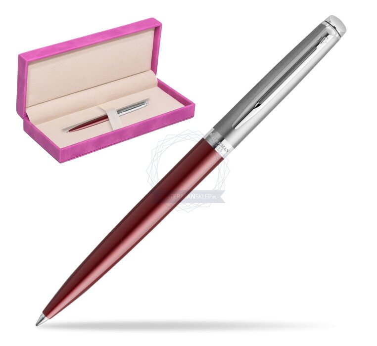 Waterman Hemisphere Essential Metallic Ballpoint Pen Red CT in suede box fuchsia (2146626_165FUCH)