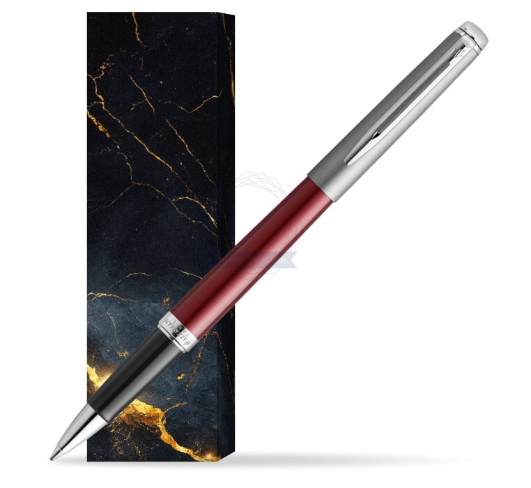 Waterman Hémisphère Rollerball Pen, stainless steel and red matte lacquer with chrome finishing, fine refill with black ink, gift box.