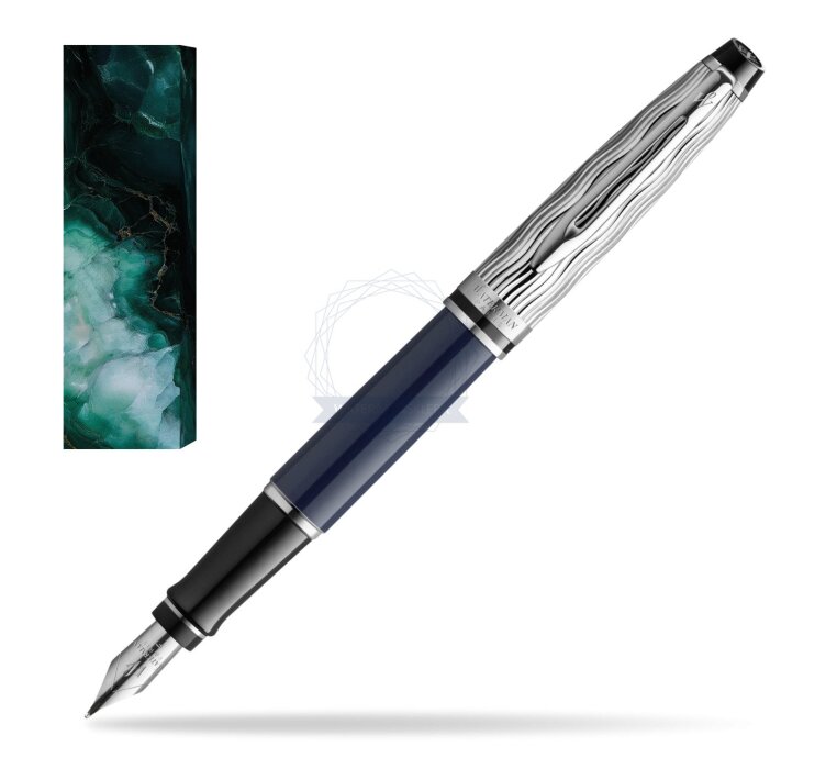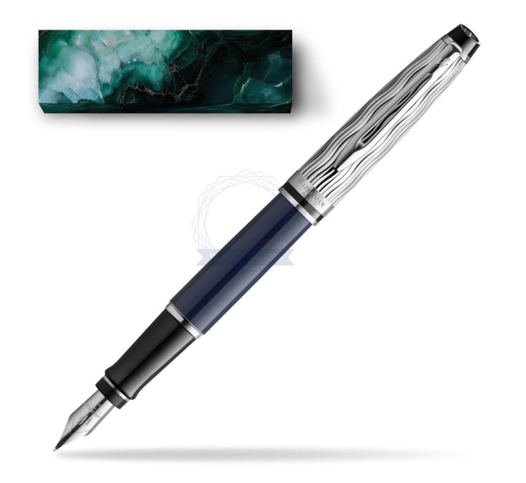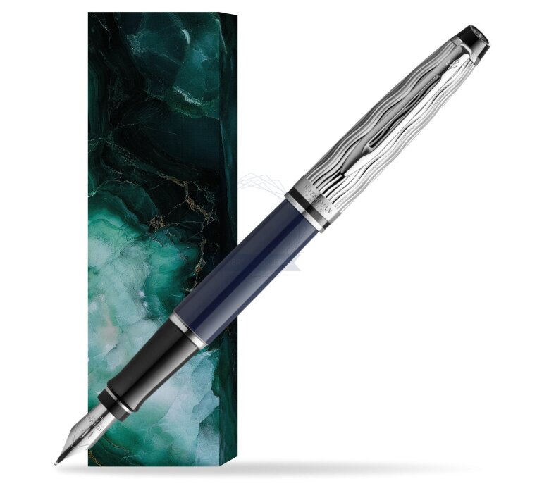 Caréne, Expert, and Exception — each proudly finished in a vibrant, deep blue lacquer and with Waterman's signature wave pattern evoking the ripples of the River Seine exquisitely etched into the precious metal cap.