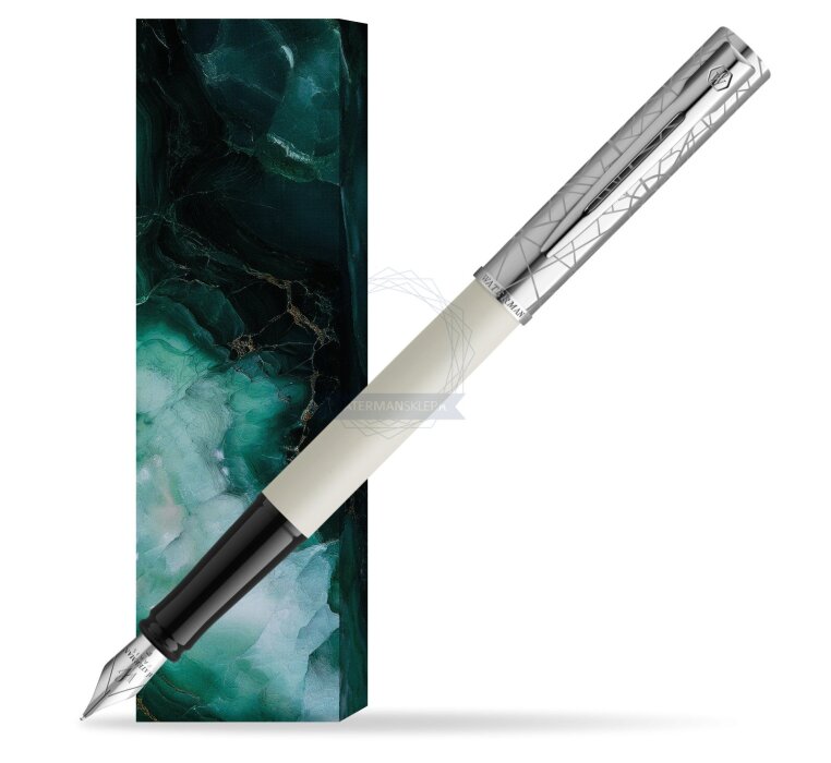 For the Allure Deluxe fountain pen, inspiration has come from some of the iconic places that define Paris. Finished in an eye-catching white lacquer with an all-metal body and a signature double-branched clip, it features an etched cap with a beautifully stylized street map of the area surrounding the city’s famous arc . Made entirely in France, benefitting from Waterman’s in house craftsmanship and over 130 years of experience, the fountain pen features a signature engraved nib with the Waterman emblem. Presented in a dark blue gift box with a 2-year international warranty.