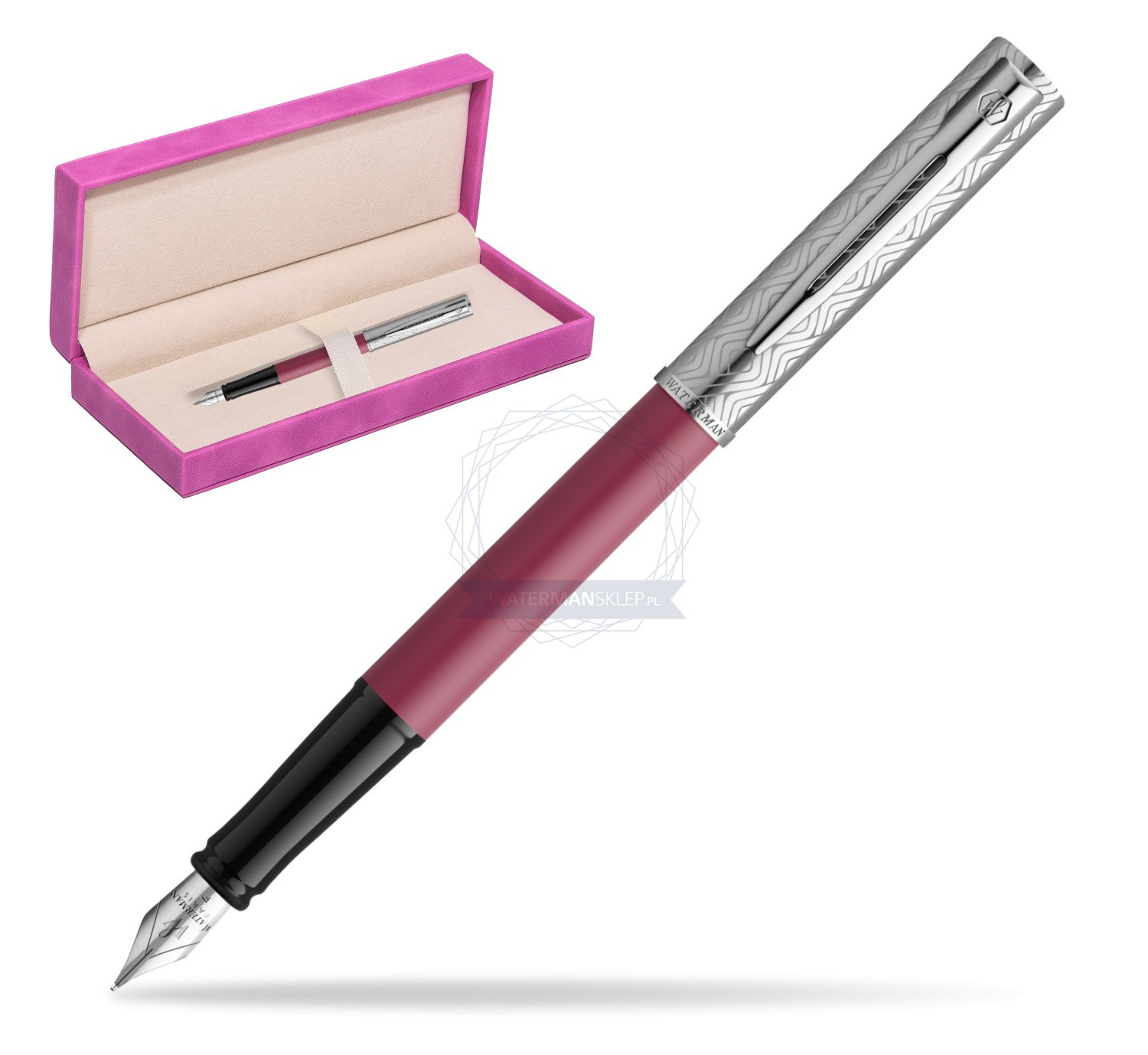 For the Allure Deluxe fountain pen, inspiration has come from some of the iconic places that define Paris. Finished in a lustrous matte pink lacquer with an all-metal body and signature double-branched clip, it features an etched cap that pays homage to the elaborate hedge patterns that dominate the Parisian gardens and delight its many visitors. Made entirely in France, benefitting from Waterman’s in house craftsmanship and over 130 years of experience, the fountain pen features an engraved nib with the Waterman emblem. Presented in a dark blue Waterman gift box with a 2-year international warranty.