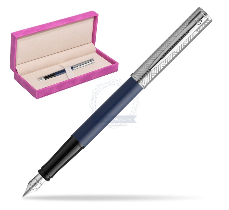 For the Allure Deluxe fountain pen, inspiration has come from some of the iconic places that define Paris. Finished in a deep matte blue lacquer with a signature double-branched clip, it features a stunning etched cap with a repeating triangular motif that references the contemporary architecture of one of the city’s most famous attractions. Made entirely in France, benefitting from Waterman’s in house craftsmanship and over 130 years of experience, the fountain pen features an engraved nib with the Waterman emblem. Presented in a dark blue gift box with a 2-year international warranty.