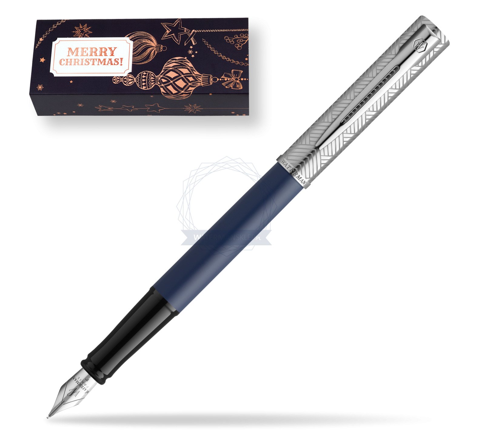 For the Allure Deluxe fountain pen, inspiration has come from some of the iconic places that define Paris. Finished in a deep matte blue lacquer with a signature double-branched clip, it features a stunning etched cap with a repeating triangular motif that references the contemporary architecture of one of the city’s most famous attractions. Made entirely in France, benefitting from Waterman’s in house craftsmanship and over 130 years of experience, the fountain pen features an engraved nib with the Waterman emblem. Presented in a dark blue gift box with a 2-year international warranty.