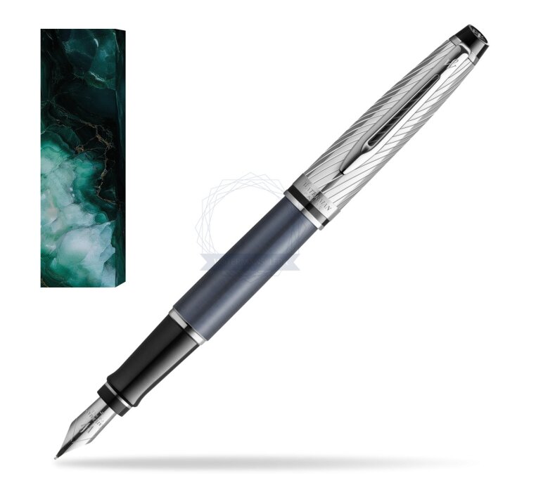 Waterman Expert Deluxe | Fountain Pen | Metal & Stone Grey Lacquer with Palladium Coated Trim | Palladium Fine Nib | Gift Box