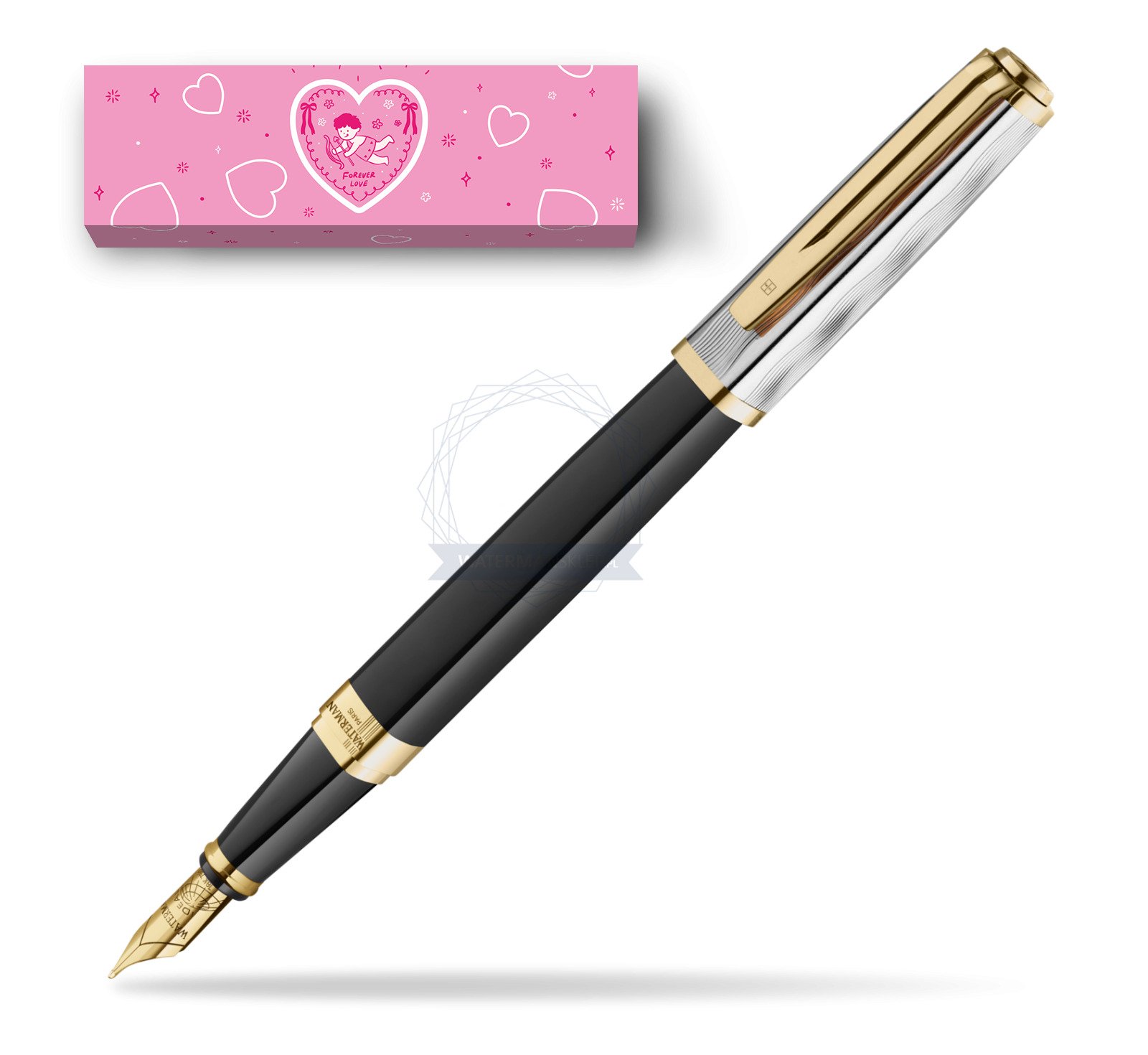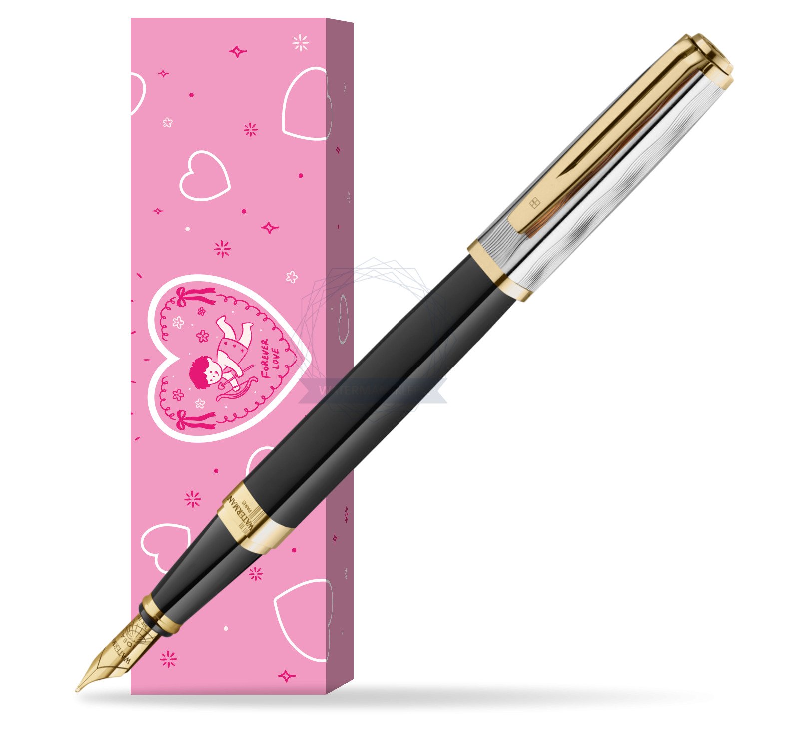 NIB: The 18K Gold, Fountain Pen Nib features the classic Waterman Globe design, enhancing the pen's sophisticated elegance.