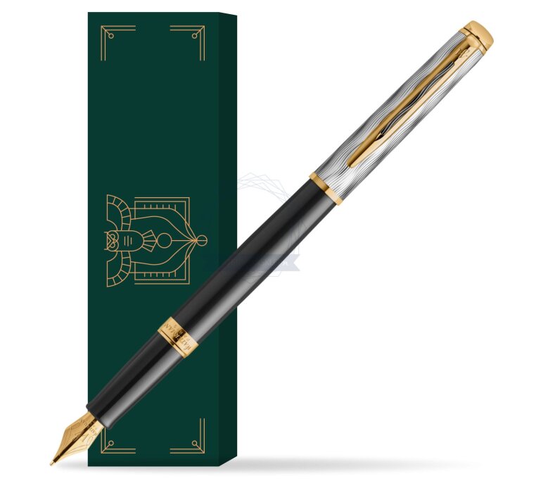 The Waterman Hémisphère's black lacquer barrel and gold-coated trims encapsulate the romantic mood of a Parisian night sky over the golden glow of the city's cafes and streetlights, whilst the exquisite, Palladium-coated cap with chiselled wave pattern perfectly captures the spirit of the undulating waves of the gently-flowing Seine. The gold-coated, Stainless Steel Fountain Pen nib complements classic Waterman features such as the signature two-prong clip and looped ‘W’. Every pen is meticulously hand-assembled in France, showcasing Waterman’s Gallic savoir-faire.