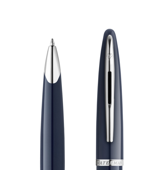 The cap and barrel’s dark blue lacquer finish combine with the palladium-coated two prong clip and trims to enhance the streamlined Waterman profile.