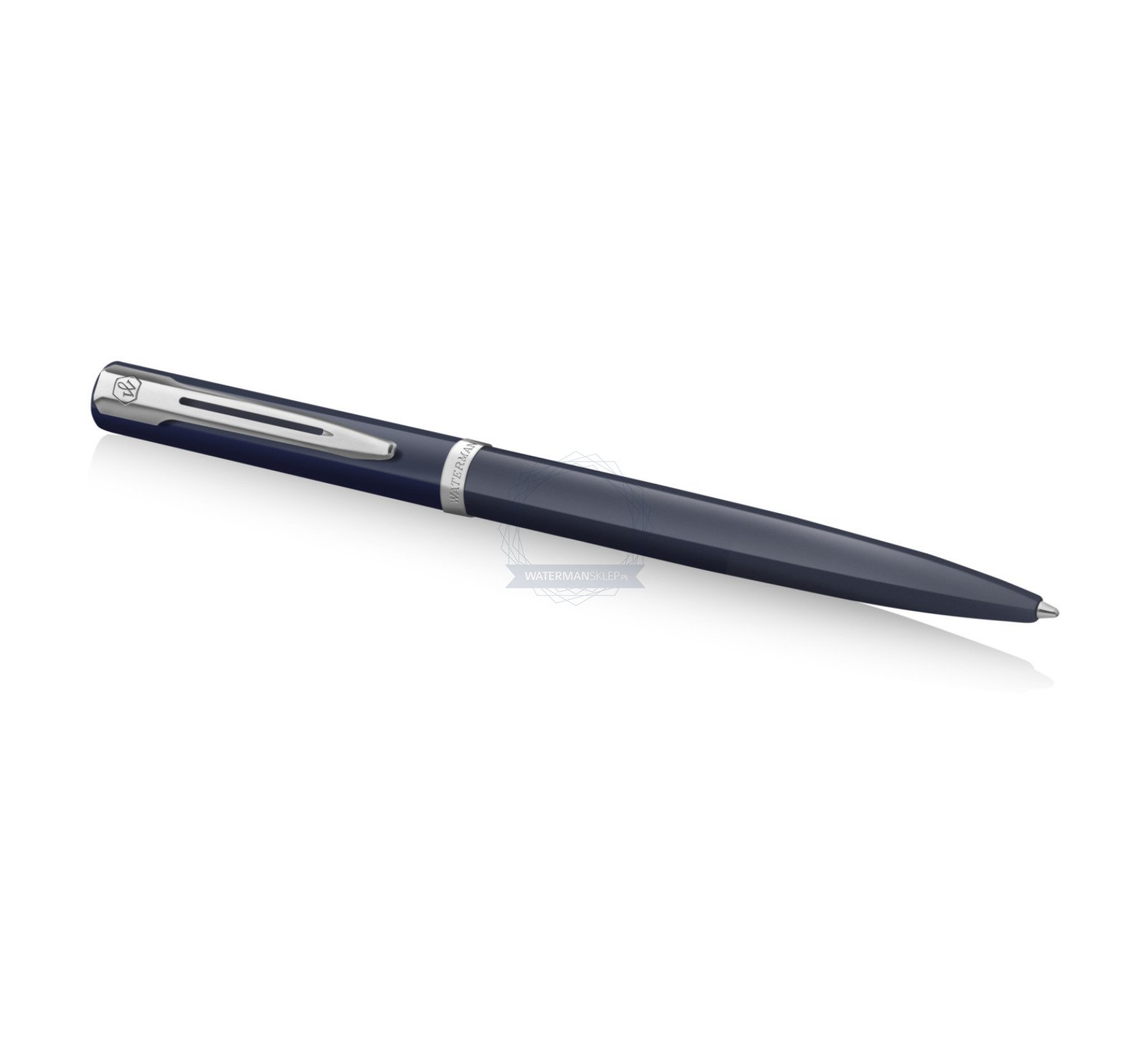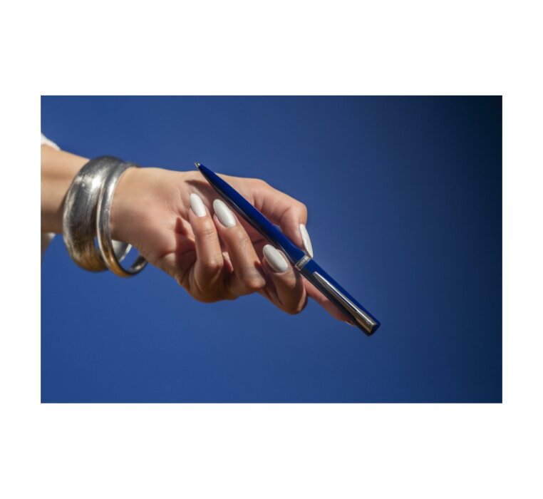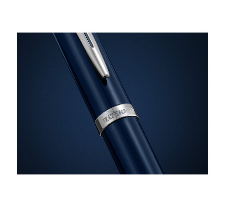 An elegant silhouette with barrel and cap finished in glossy blue lacquer. Waterman’s signature split clip and the wide palladium-plated cap band complete the design with refined charm.