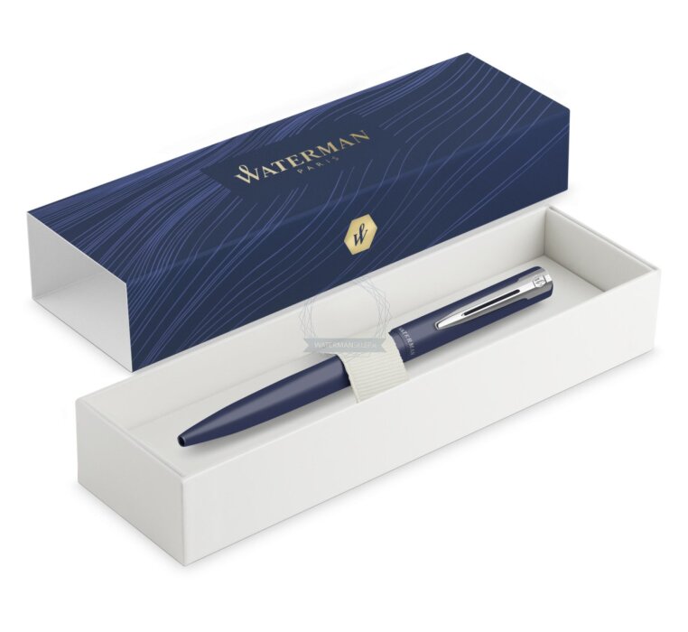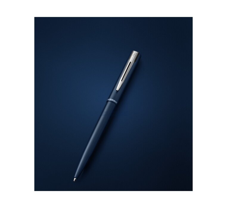 Waterman Allure Navy Blue is an elegant ballpoint pen designed for everyday writing – light in feel, modern in form, and refined in every detail. The matte blue barrel draws attention with its subtle look, while the chrome trims (CT) give the pen a professional, timeless character.