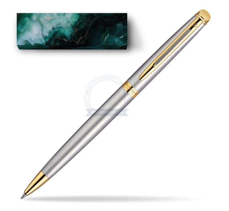Hémisphère makes each moment refreshingly elegant. In the spirit of Waterman innovation, it redefines timeless lines with a new focus on streamlined simplicity. Striking clean design and noble materials come together for a delightful writing experience to inspire your most creative thoughts. Everything flows from the elegant slim shape. Features a dynamic combination of elements like the slim clip and broad ring, to enhance the distinctively narrow form. Mixing metals for an anytime accessory, brushed solid stainless steel and 23 K golden trims, in a classic composition of smooth discerning style. Stainless steel nib. Hémisphère Stainless Steel GT Ballpoint pen is ideal as a gift for everyone on all kinds of occasions like birthdays or as a Waterman Christmas gift. This product is perfect for all companies who wants to give Waterman gifts for their employees, partners or investors. Once you feel the grace and fluidity in writing of this product you can get Fountain Pen, Mechanical Pencil and Rollerball Pen matching to the set. This Waterman Ballpoint Pen can be refilled with every Waterman Ballpoint refill. This product can be engraved by laser. This Waterman Ballpoint Pen comes with a Ballpoint refill in random colour Black or blue. Presented in its Waterman gift box.