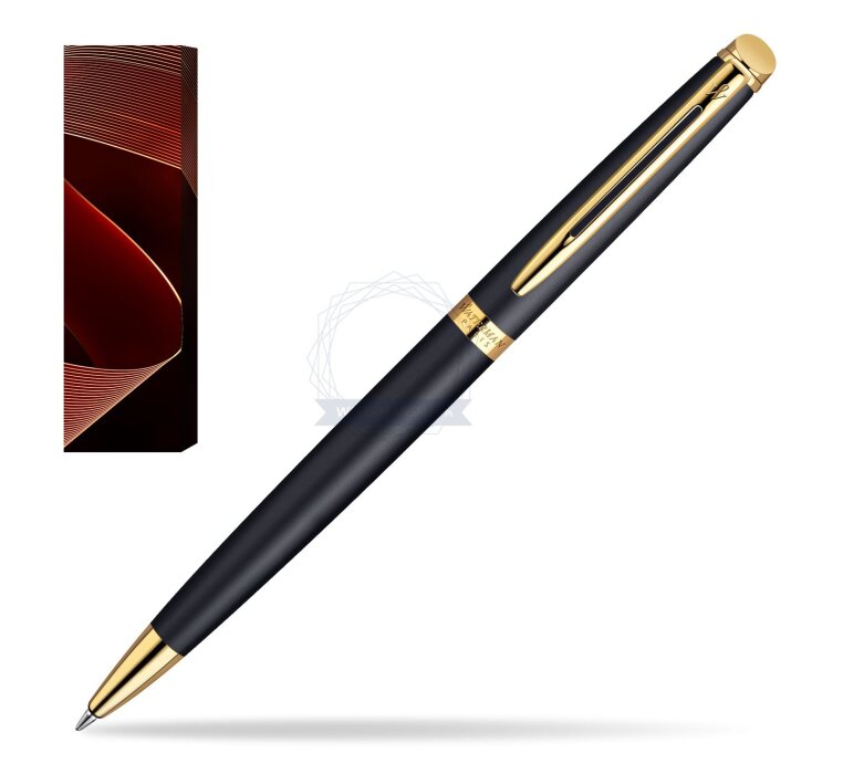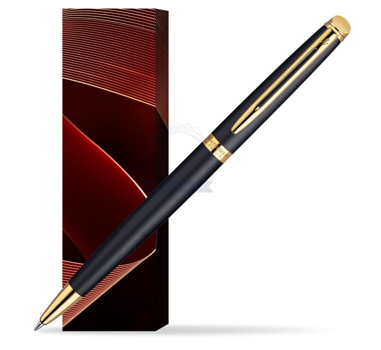 Hémisphère makes each moment refreshingly elegant. In the spirit of Waterman innovation, it redefines timeless lines with a new focus on streamlined simplicity. Striking clean design and noble materials come together for a delightful writing experience to inspire your most creative thoughts. Everything flows from the elegant slim shape. Features a dynamic combination of elements like the slim clip and broad ring, to enhance the distinctively narrow form. A satin matt black finish with a touch of sparkling 23K golden trims, gives a tailored, classic finish for a sophisticated statement of style. Stainless steel nib. Hémisphère Matt Black GT Ballpoint pen is ideal as a gift for everyone on all kinds of occasions like birthdays or as a Waterman Christmas gift. This product is perfect for all companies who wants to give Waterman gifts for their employees, partners or investors. Once you feel the grace and fluidity in writing of this product you can get Fountain Pen, Mecjanical Pencil and Rollerball Pen matching to the set. This Waterman Ballpoint Pen can be refilled with every Waterman Ballpoint refill. This product can be engraved by laser. This Waterman Ballpoint Pen comes with a Ballpoint refill in random colour Black or blue. Presented in its Waterman gift box.
