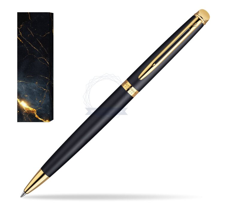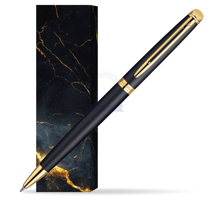Hémisphère makes each moment refreshingly elegant. In the spirit of Waterman innovation, it redefines timeless lines with a new focus on streamlined simplicity. Striking clean design and noble materials come together for a delightful writing experience to inspire your most creative thoughts. Everything flows from the elegant slim shape. Features a dynamic combination of elements like the slim clip and broad ring, to enhance the distinctively narrow form. A satin matt black finish with a touch of sparkling 23K golden trims, gives a tailored, classic finish for a sophisticated statement of style. Stainless steel nib. Hémisphère Matt Black GT Ballpoint pen is ideal as a gift for everyone on all kinds of occasions like birthdays or as a Waterman Christmas gift. This product is perfect for all companies who wants to give Waterman gifts for their employees, partners or investors. Once you feel the grace and fluidity in writing of this product you can get Fountain Pen, Mecjanical Pencil and Rollerball Pen matching to the set. This Waterman Ballpoint Pen can be refilled with every Waterman Ballpoint refill. This product can be engraved by laser. This Waterman Ballpoint Pen comes with a Ballpoint refill in random colour Black or blue. Presented in its Waterman gift box.