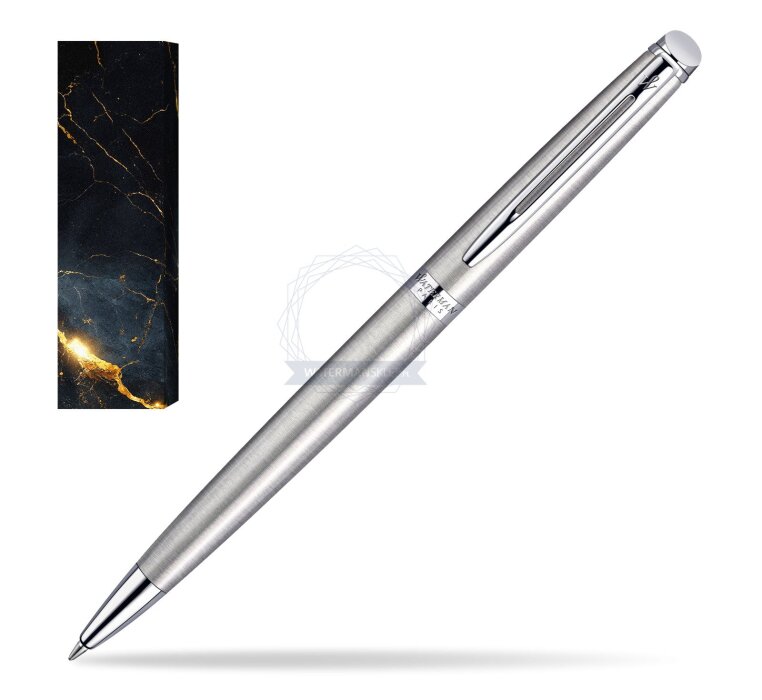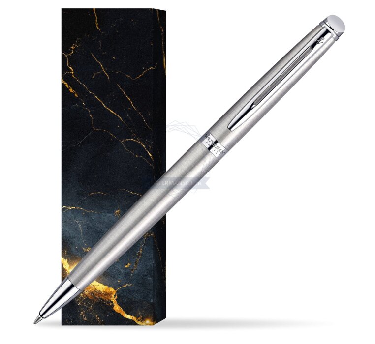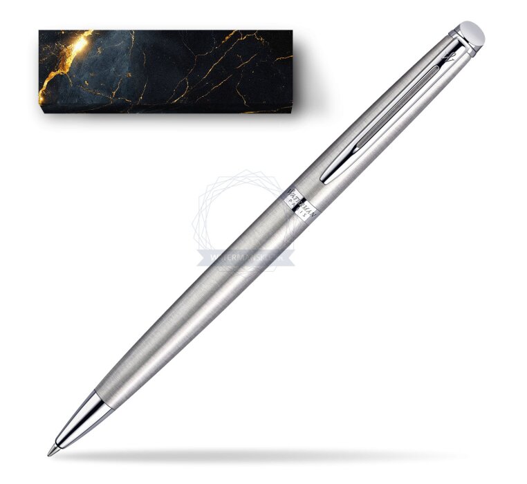Hémisphère makes each moment refreshingly elegant. In the spirit of Waterman innovation, it redefines timeless lines with a new focus on streamlined simplicity. Striking clean design and noble materials come together for a delightful writing experience to inspire your most creative thoughts. Everything flows from the elegant slim shape. Features a dynamic combination of elements like the slim clip and broad ring, to enhance the distinctively narrow form. Contemporary brushed stainless steel and vivid palladium plated trims, highlight the slim and smooth-touch finish with the cool, clear colour of ice. Hémisphère Stainless Steel CT Ballpoint pen is ideal as a gift for everyone on all kinds of occasions like birthdays or as a Waterman Christmas gift. This product is perfect for all companies who wants to give Waterman gifts for their employees, partners or investors. Once you feel the grace and fluidity in writing of this product you can get Fountain Pen, Mechanical Pencil and Rollerball Pen matching to the set. This Waterman Ballpoint Pen can be refilled with every Waterman Ballpoint refill. This product can be engraved by laser. This Waterman Ballpoint Pen comes with a Ballpoint refill in random colour Black or blue. Presented in its Waterman gift box.
