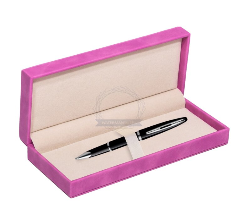 Carène rides the crest of the innovation wave. Taking inspiration from luxury boat design, the result is our most distinguished example of pioneering vision. Crafted in noble materials, with an artist’s attention to detail, its pure fluid curves conjure up the sleekest lines of a leisure cruiser, or the billowing sails of a luxury yacht. Set sail for the adventure of a lifetime. The streamlined silhouette reflects a determination to achieve absolute purity, notably in the sublimely integrated nib of the fountain pen version. Layers of glossy black lacquer and luminous palladium-plated trims bring a stylish touch of modernity to a truly timeless design. 18K solid gold (rhodium-plated) nib. Carène Black Sea ST Rollerball pen is ideal as a gift for everyone on all kinds of occasions like birthdays or as a Waterman Christmas gift. This product is perfect for laser engravings and thats why it’s perfect for all companies who wants to give Waterman gifts for their employees, partners or investors. Once you feel the grace and fluidity in writing of this product you can get Fountain Pen and Ballpoint matching to the set. This Waterman Rollerball Pen can be refilled with every Waterman rollerball refill. This product can be engraved by laser. This Waterman Rollerball Pen comes with a rollerball refill in random colour Black or blue. Presented in its Waterman gift box.